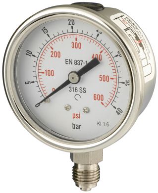 63mm - All Stainless - Dry Fillable - Bottom Connection - Accuracy 1.6% - Crimped Bezel